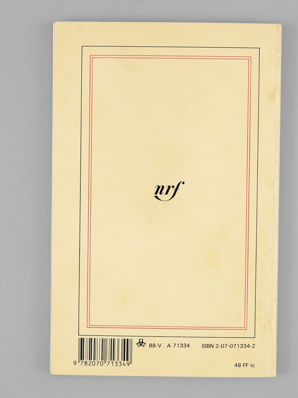 Envoi ms. de l'auteur, 1 vol. petit in-8 br., NRF, Gallimard, Paris, 1988, 78 pp.