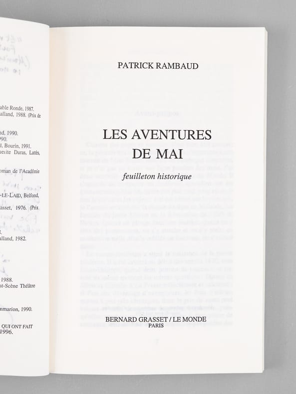 Superbe envoi de Patrick Rambaud :""Et maintenant, vous vous en foutez" (Maurice Druon, hôtel Lutetia le 10 novembre 1997) Très cher Perpétuel, nous avons suivi vos conseils à la lettre : Une maison anglo-normande à Trouville et un compte pour le [ ... ] vorace. Nous n'avons pas acheté de Sonchelles. Affectueusement à vous et à Madame Druon". Ce très bel envoi est un beau clin d'oeil de Patrick Rambaud aux "sucreries Sonchelles" du roman "Les Grands Familles", de Maurice Druon. De la bibliothèque de Maurice Druon, Secrétaire Perpétuel de l'Académie Française de 1985 à 1999. Bon exemplaire. "La Bataille" avait obtenu en 1997 le Prix Goncourt et le Grand prix du roman de l'Académie française.