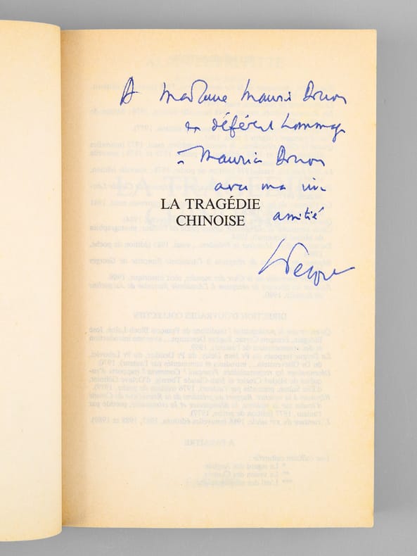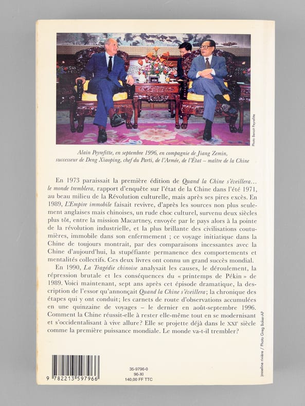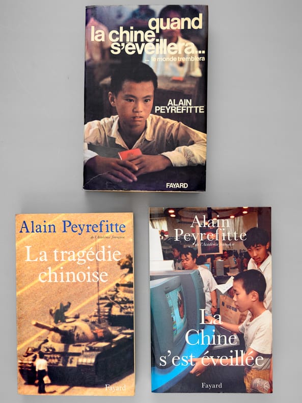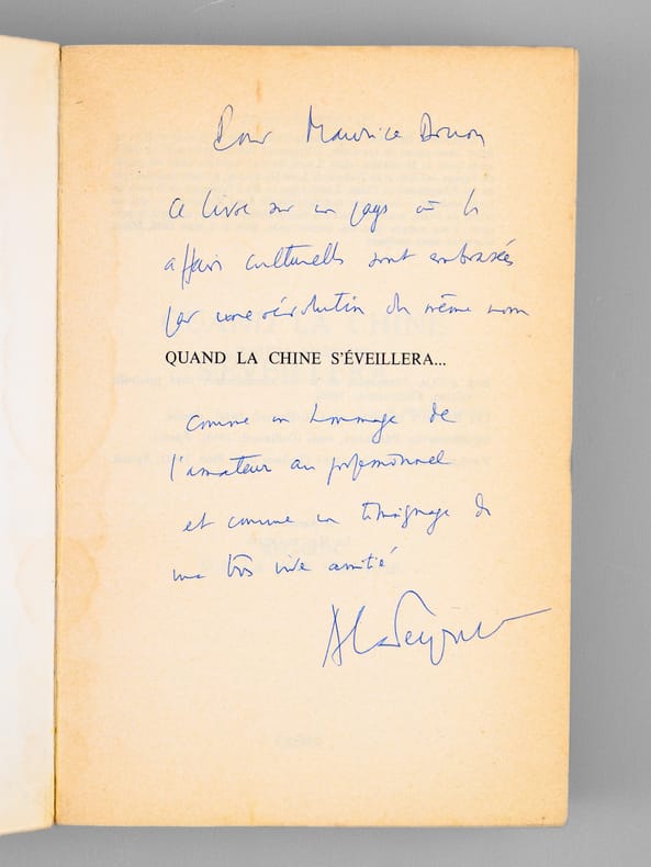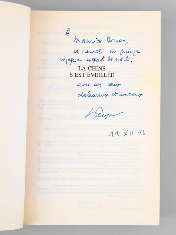 Envois ms. de l'auteur, 3 vol. in-8 br., Fayard, Paris, 1973, 1990, 1996 : Quand la Chine s'éveillera... le monde tremblera - La Tragédie chinoise - La Chine s'est éveillée