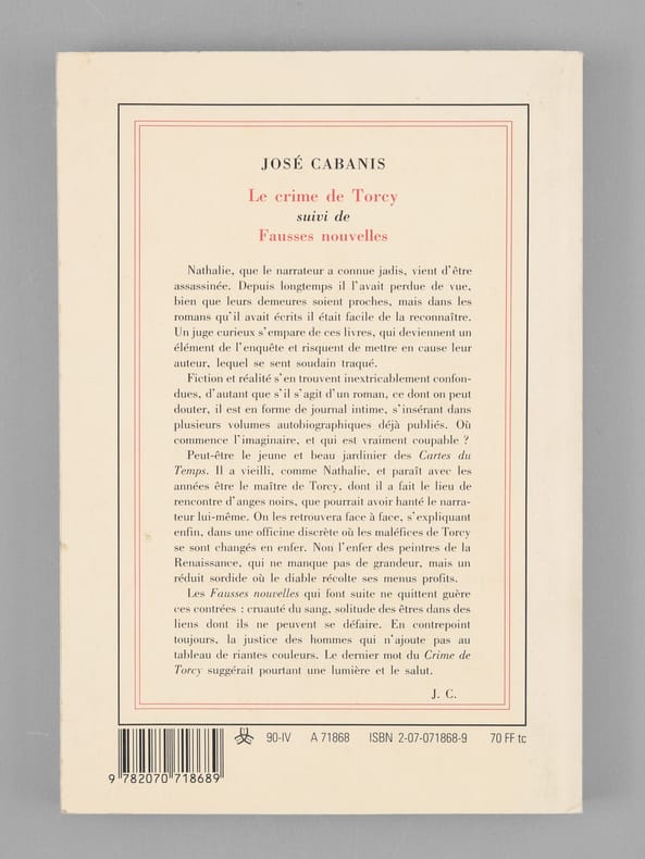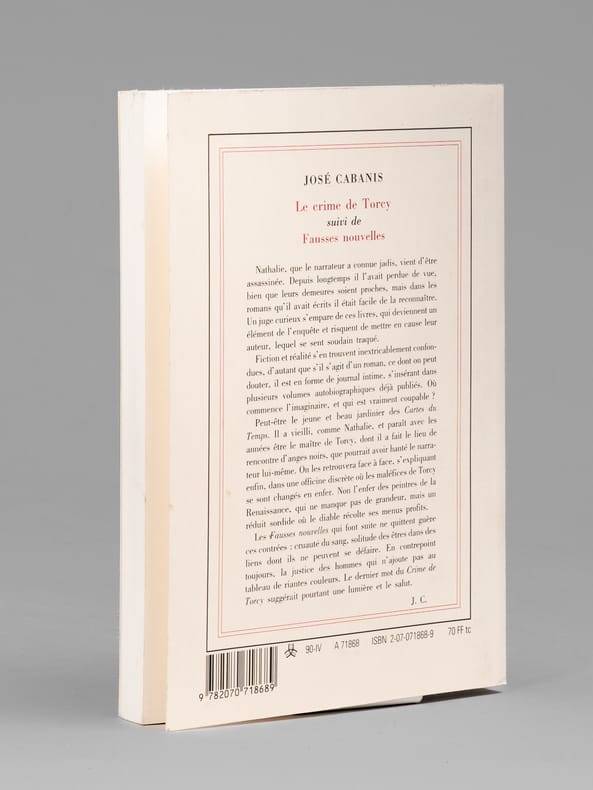 1 vol. in-8 br., NRF, Gallimard, Paris, 1990, 136 pp.