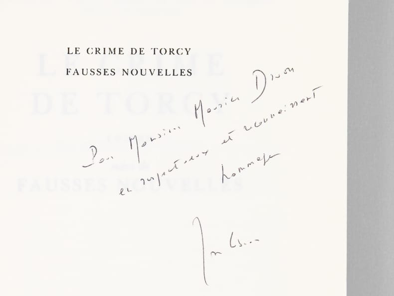 Envoi de José Cabanis à Maurice Druon, alors Secrétaire Perpétuel de l'Académie Française. Bon état