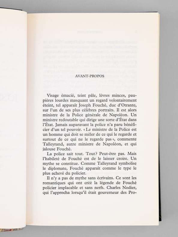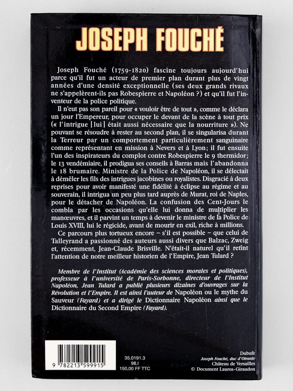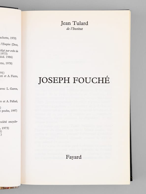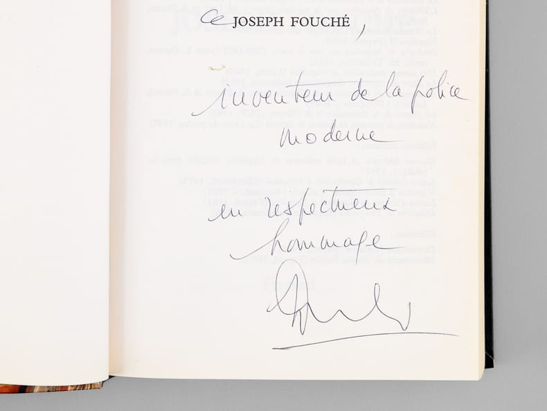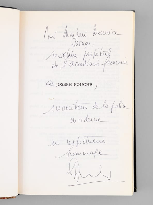 Envoi de Jean Tulard "Pour Maurice Druon. Secrétaire Perpétuel de l'Académie Française, ce "Joseph Fouché", inventeur de la Police moderne". Bon état