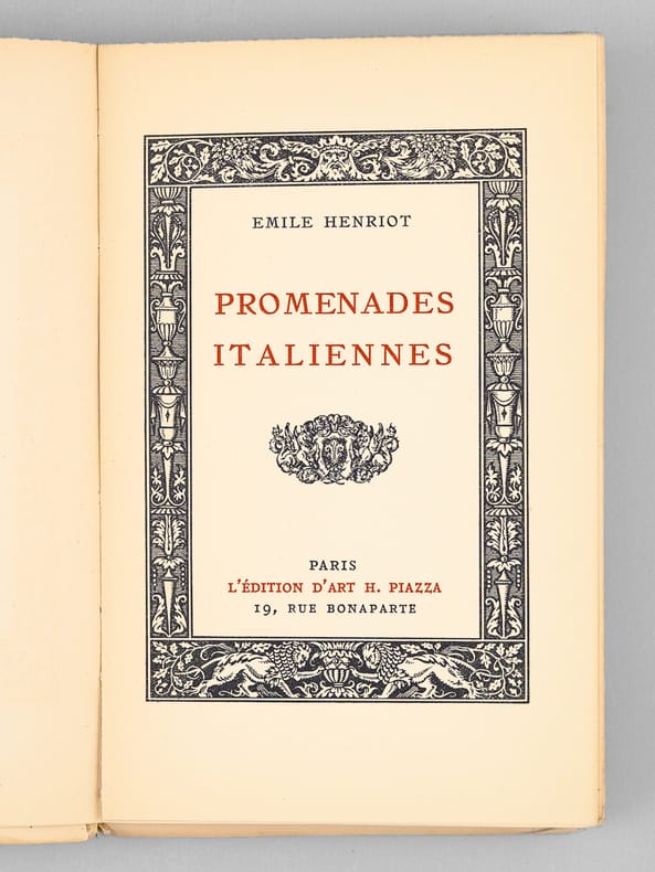 1 vol. in-12 br., L'Edition d'Art H. Piazza, Paris, 1930, 185 pp.