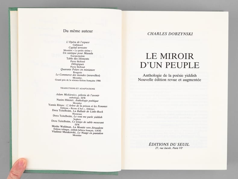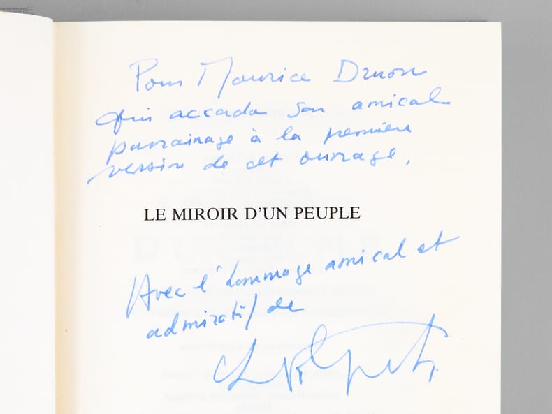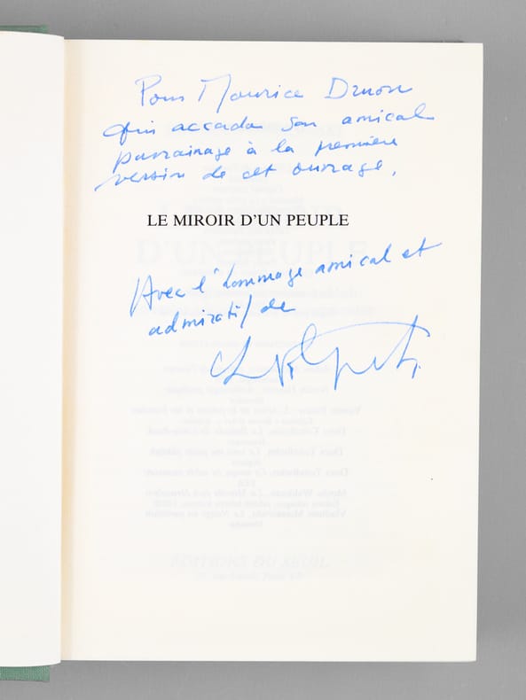 Bel envoi de l'auteur "Pour Maurice Druon, qui accorda son amical parrainage à la première session de cet ouvrage, "Le miroir d'un Peuple", avec l'hommage amical et admiratif de Charles Dobzynski". Bon état (sans la jaquette)