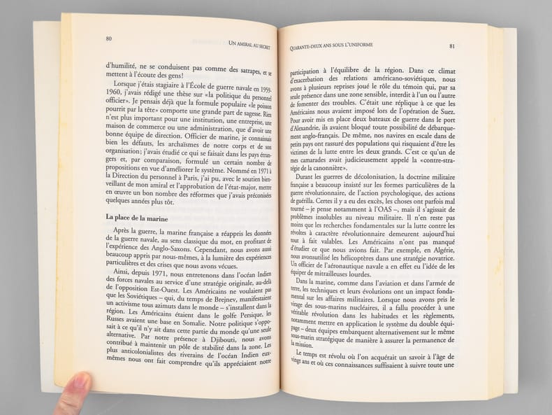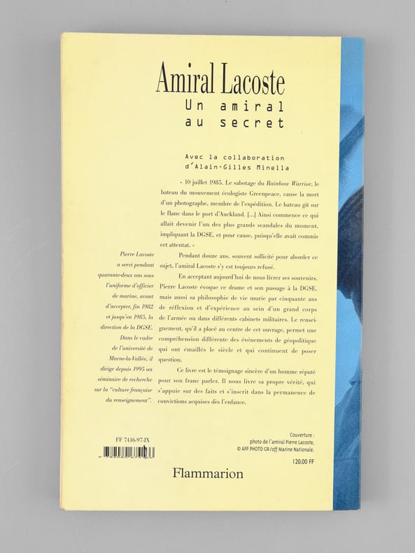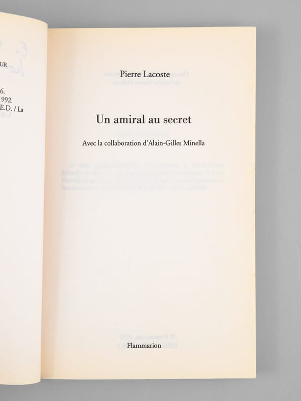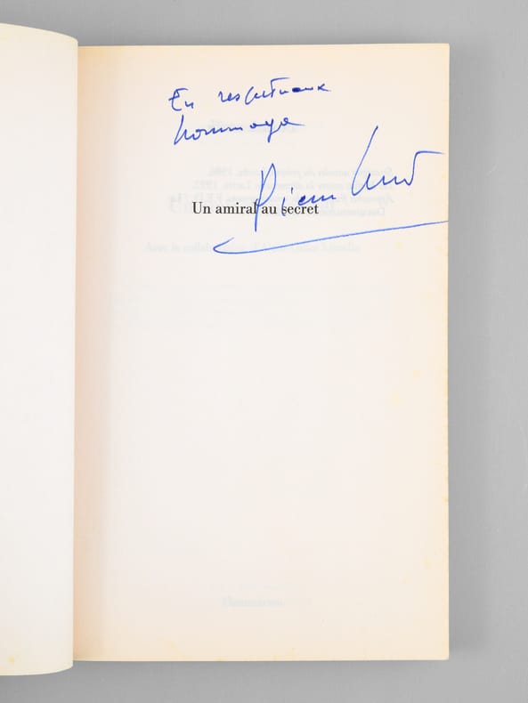 Envoi de l'Amiral Lacoste "en respectueux hommage". Belle provenance : de la bibliothèque de Maurice Druon, futur Secrétaire Perpétuel de l'Académie Française, qui, conformément à son habitude, a plié l'angle des feuillets contenant des passages de l'ouvrage qui avaient retenu plus particulièrement son attention. Cet ouvrage a particulièrement retenu son attention, avec plus de 15 feuillets signalés.