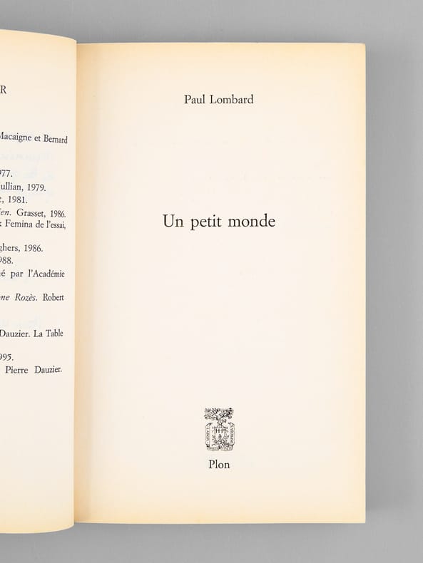 Envoi ms. de l'auteur, 1 vol. in-8 br., Plon, 2001, 285 pp.