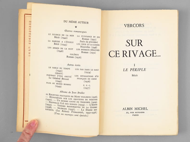 Exemplaire du service de presse marqué S.P., 1 vol. in-12 br., Albin Michel, Paris, 1958, 156 pp.