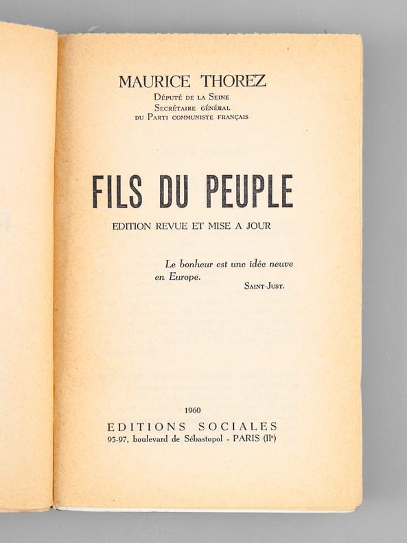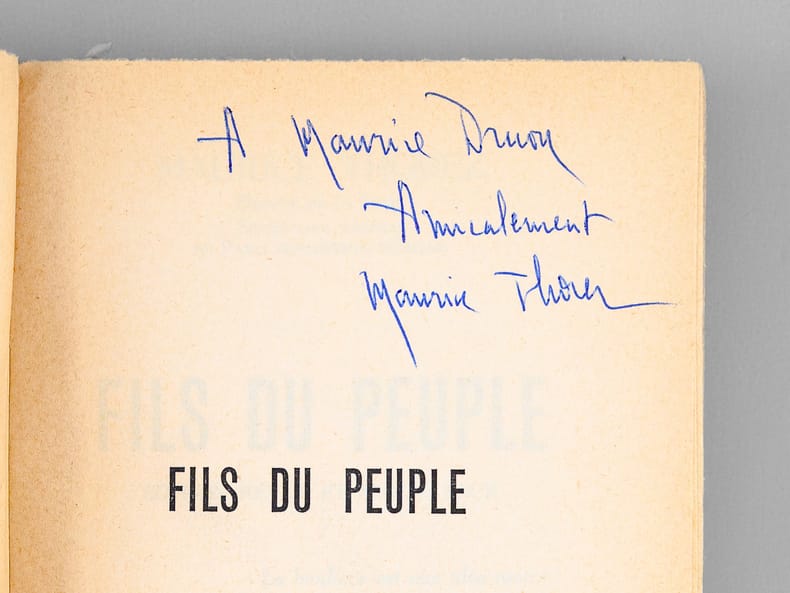 Remarquable exemplaire dédicacé par le Secrétaire Général du Parti Communiste Français "à Maurice Druon, amicalement". Superbe provenance, de la bibliothèque du grand écrivain Maurice Druon, Secrétaire Perpétuel de l'Académie Française de 1985 à 1999 et immortel auteur avec son oncle Joseph Kessel du "Chant des Partisans"