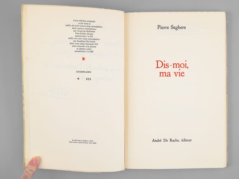 Envoi de Pierre Seghers "A Monsieur Maurice Druon, de l'Académie Française, avec mes sentiments d'admiration et l'hommage" de l'auteur. Etat très satisfaisant (couv. lég. frottée)