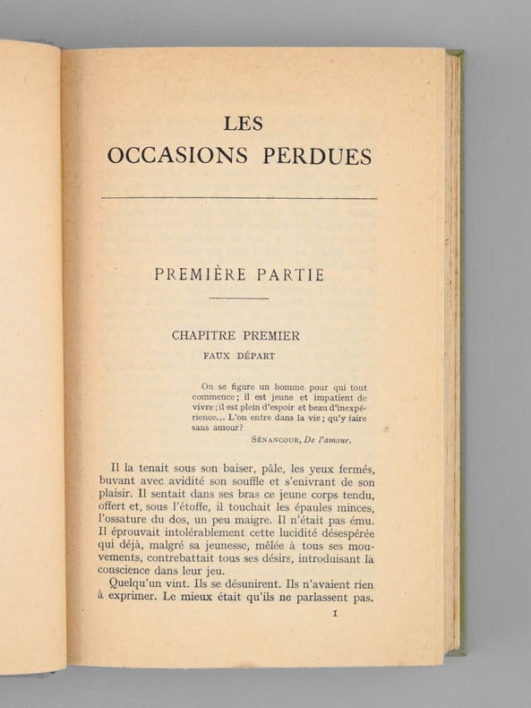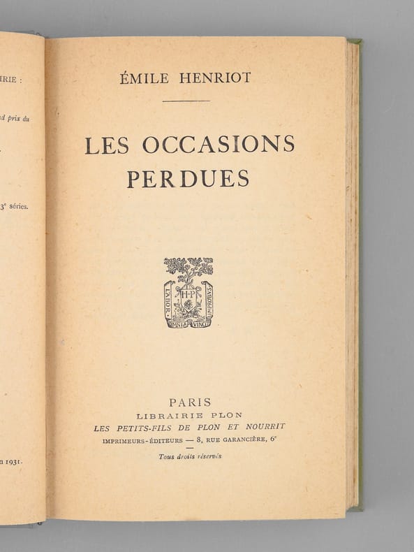 Exemplaire sur alfa non numéroté de l'édition originale, 1 vol. in-12 reliure bradel pleine toile verte, couvertures et dos conservés, Librairie Plon, Les Petits-Fils de Plon et Nourrit, Plon, Paris, 1931, 383 pp.