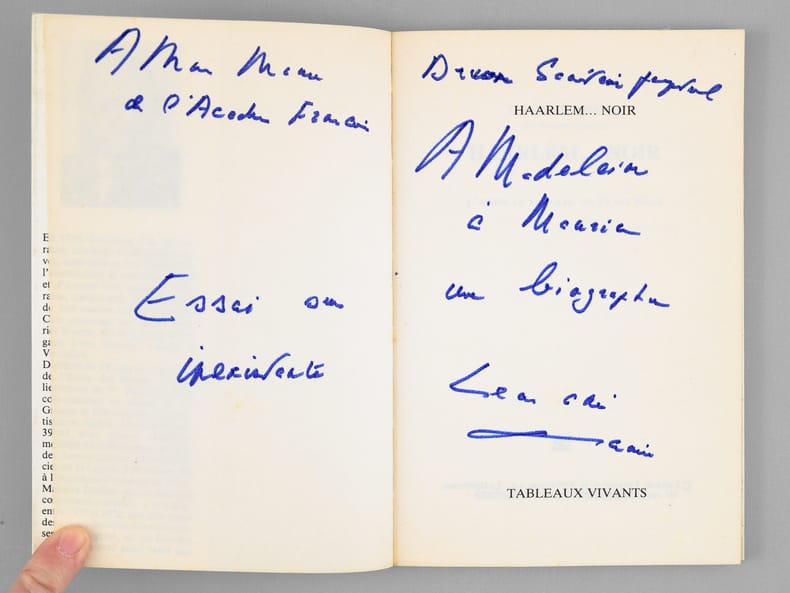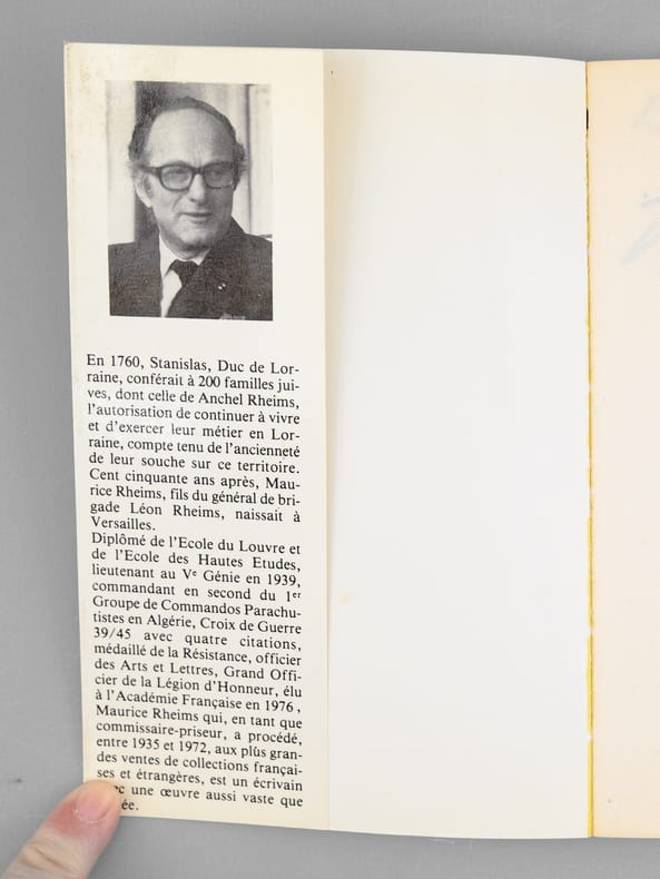 Envoi de Maurice Rheims, "A Monsieur Maurice Druon Secrétaire Perpétuel de l'Académie Française, A Madeleine, A Maurice, Essai sur une biographie inexistante, Leur Cher Maurice". Bon état (qq. rouss. en tête, bon exemplaire par ailleurs) pour cet exemplaire de superbe provenance : de la bibliothèque du grand écrivain Maurice Druon, Secrétaire Perpétuel de l'Académie Française de 1985 à 1999.