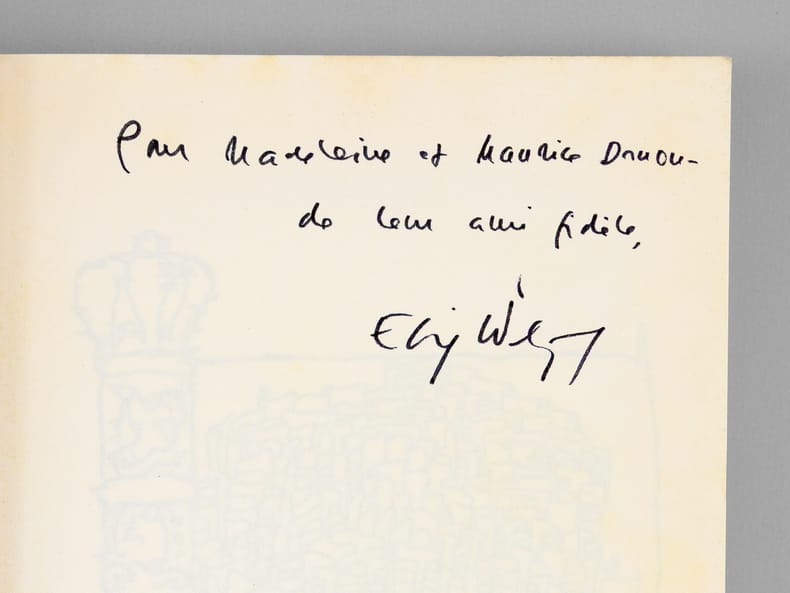 Envoi de l'auteur à Maurice Druon : "Pour Madeleine et Maurice Druon, de leur ami fidèle." Etat trè satisfaisant (couv. lég. frottée, bon état par ailleurs). Maurice Druon (1918-2009), neveu de Joseph Kessel, fut résistant, écrivain auteur notamment de la saga des Rois maudits, homme politique. Elu à l'Académie Française en 1968, il en devint le Secrétaire Perpétuel en 1985.
