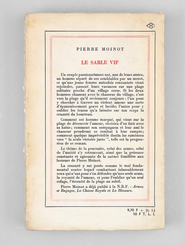 1 vol. in-12 br., NRF Gallimard, 1963, 254 pp.