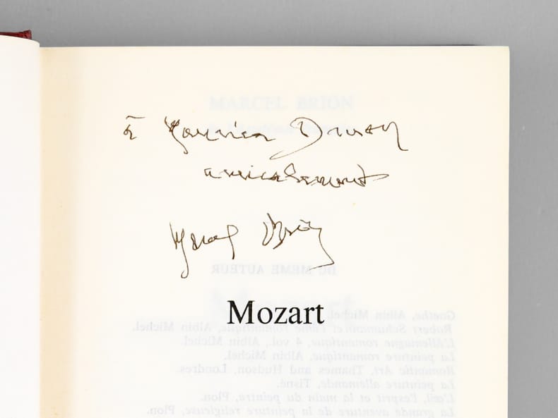 Envoi de Marcel à son confrère de l'Académie Française, Maurice Druon. Etat très satisfaisant (sans les jaquettes) pour cet exemplaire de provenance prestigieuse : de la bibliothèque du grand écrivain Maurice Druon, Secrétaire Perpétuel de l'Académie Française de 1985 à 1999.