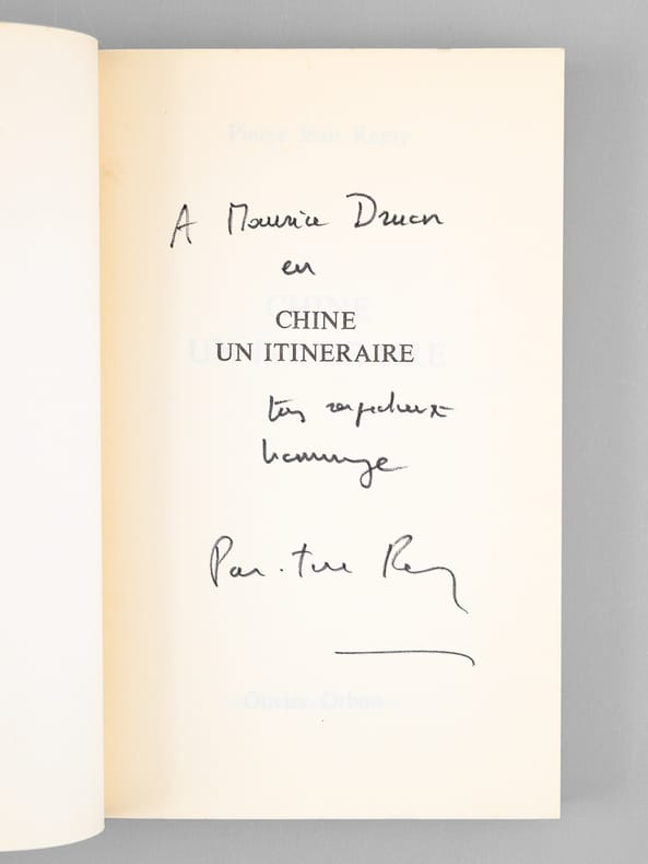 Envoi de Pierre-Jean Rémy, "A Maurice Druon, en très respectueux hommage". Bon état pour cet exemplaire de provenance prestigieuse : de la bibliothèque du grand écrivain Maurice Druon, Secrétaire Perpétuel de l'Académie Française de 1985 à 1999.