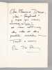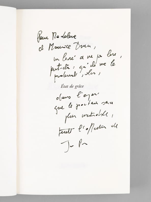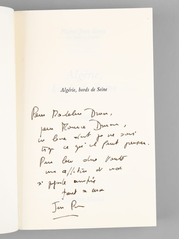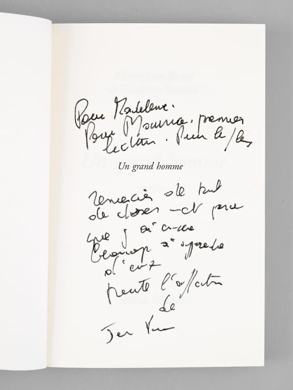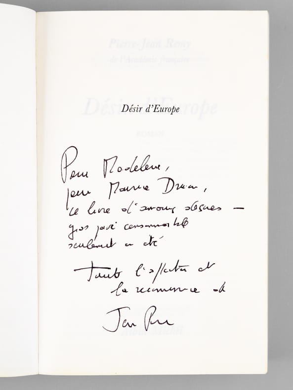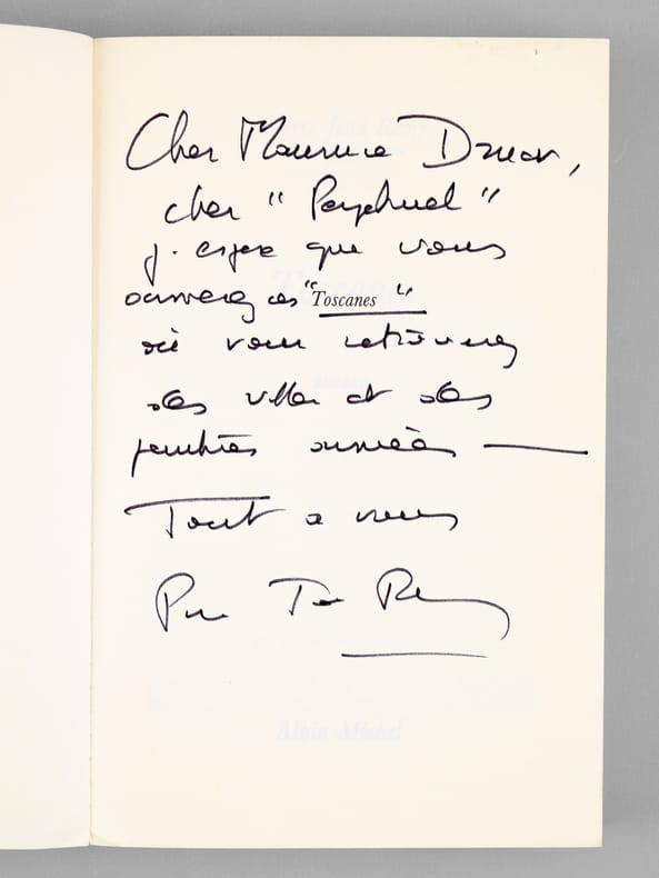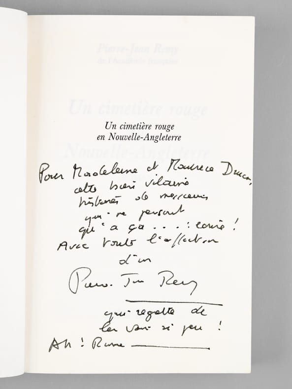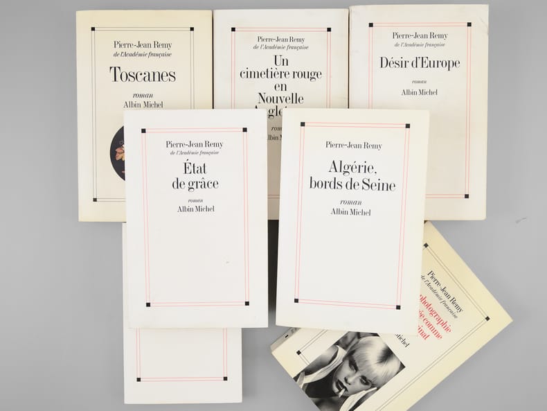 Bon ensemble réunissant ces 7 romans, tous enrichis d'une belle dédicace de Pierre-Jean Rémy à Maurice Druon (et à son épouse). Bon état (qq. petits frott. en couv. et qq. rouss. sur tranches) pour cet ensemble de provenance prestigieuse : de la bibliothèque du grand écrivain Maurice Druon, Secrétaire Perpétuel de l'Académie Française de 1985 à 1999, auteur des "Rois Maudits" et co-auteur avec son oncle Joseph Kessel du "Chant des Partisans". Conformément à sonhabitude, Maurice Druon a replié dans 2 volumes l'angle des feuillets dont la lecture avait plus particulièrement retenu son attention.