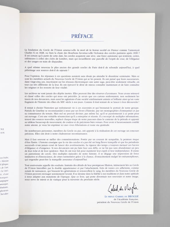 Tirage à 1000 exemplaires, 1 vol. in-4 br., Nouveau Cercle de l'Union, 33 rue du Faubourg Saint Honoré, Paris, 2003, 126 pp.