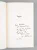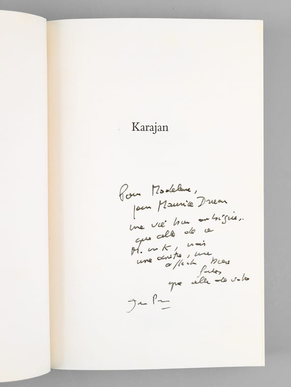 Bel envoi de l'auteur pour "Madeleine, pour Maurice Druon, une vie bien ambiguë, que celle de ce M. von K., mais une amitié, une affection bien forte que celle de votre Pierre-Jean" pour cet ouvrage de provenance prestigieuse : de la bibliothèque du grand écrivain Maurice Druon, Secrétaire Perpétuel de l'Académie Française de 1985 à 1999, auteur des "Rois Maudits" et co-auteur avec son oncle Joseph Kessel du "Chant des Partisans".