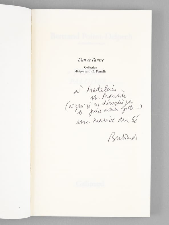1 vol. in-8 br. sous jaquette illustrée, collection "L'un et l'autre", Gallimard, Paris, 2001