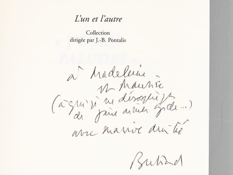 Bel envoi de l'Académicien Bertrand Poirot-Delpech à : "A Madeleine et Maurice (à qui je e désespère pas de faire aimer Gide...). Avec ma vive amitié". Bon état pour cet exemplaire de provenance prestigieuse : de la bibliothèque du grand écrivain Maurice Druon, Secrétaire Perpétuel de l'Académie Française de 1985 à 1999, auteur des "Rois Maudits" et co-auteur avec son oncle Joseph Kessel du "Chant des Partisans".