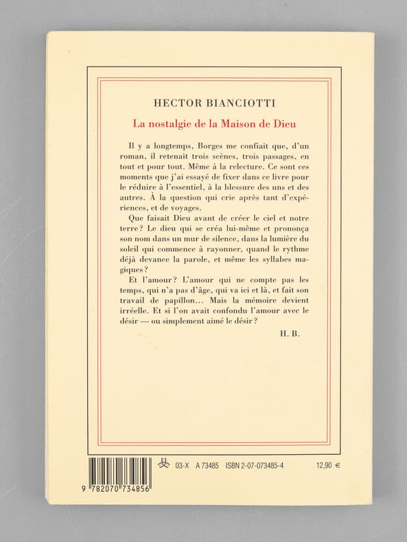 1 vol. in-8 br., NRF, Gallimard, Paris, 2003, 141 pp.