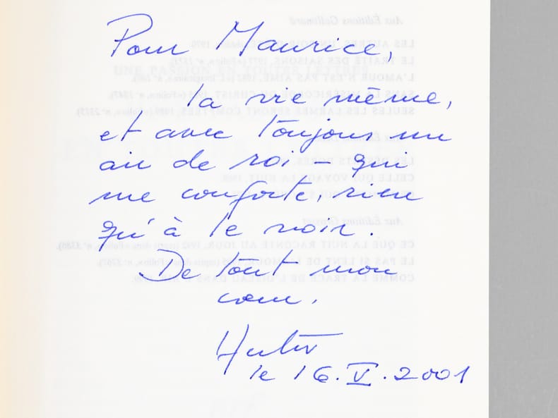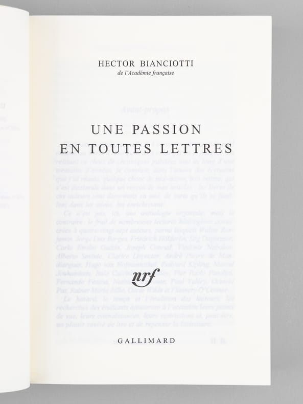 Bel envoi d'Hector Biancotti "Pour Maurice, la vie même, et avec toujours un air de roi - qui me conforte, rien qu'à le voir. De tout mon coeur". Bon état (qq. rouss. sur tranche sup.) pour cet exemplaire de superbe provenance : de la bibliothèque du grand écrivain Maurice Druon, Secrétaire Perpétuel de l'Académie Française de 1985 à 1999