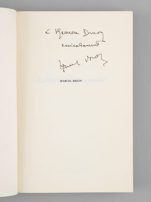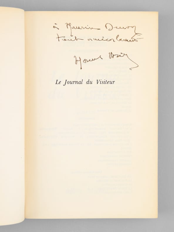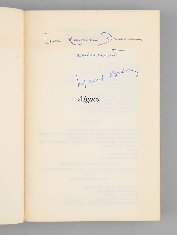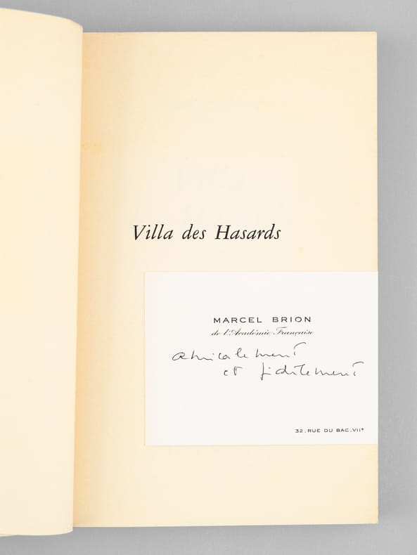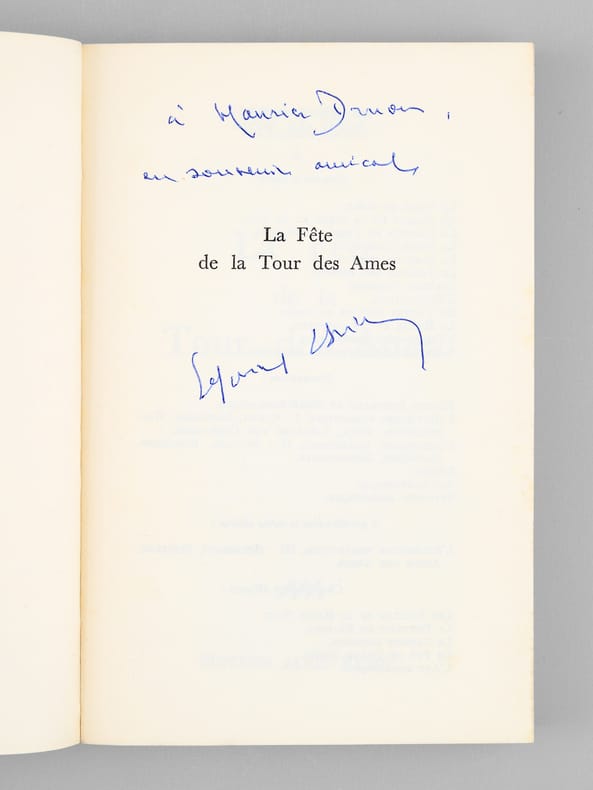 5 des 6 romans sont dédicacés, le second est accompagné d'une carte de visite avec petite mention autographe de l'auteur. Bon ensemble (rouss. sur couv.), de la bibliothèque du grand écrivain Maurice Druon, Secrétaire Perpétuel de l'Académie Française de 1985 à 1999. Prix du lot non séparable.