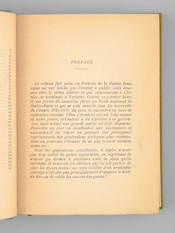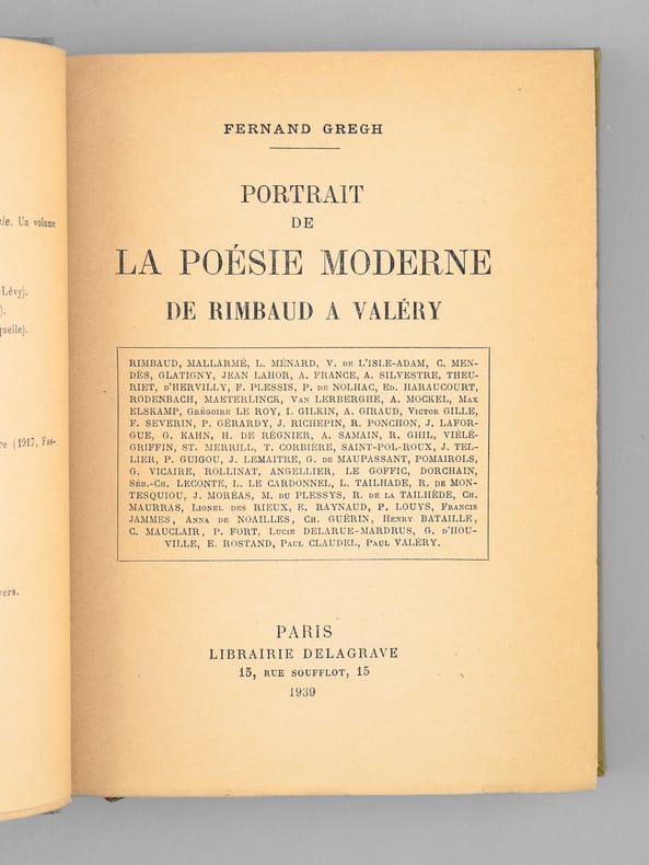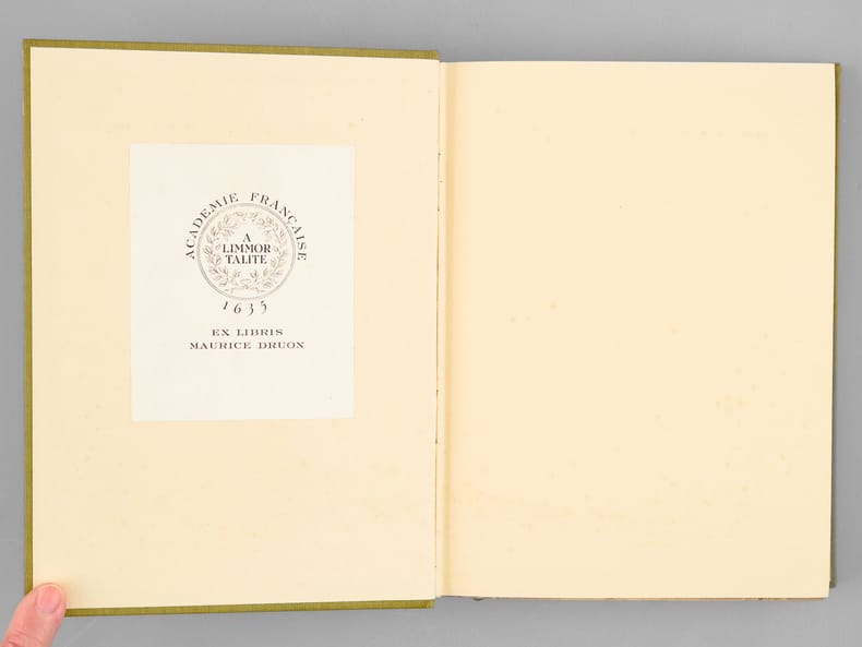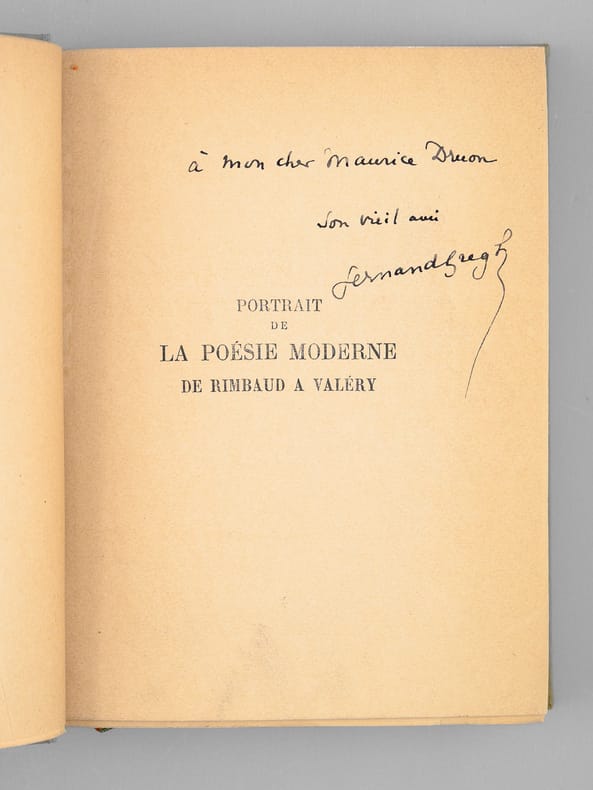 Envoi de Fernand Gregh "à mon cher Maurice Druon, son vieil ami". Bon exemplaire pour cet exemplaire venant de la bibliothèque du grand écrivain Maurice Druon, Secrétaire Perpétuel de l'Académie Française de 1985 à 1999. Maurice avait publié en 1937 le texte d'une Conférence prononcée au Lycée Michelet au cours d'une matinée en l'honneur du poète, intitulé "Fernand Gregh et son oeuvre" ; il épousera en 1939 la fille de Fernand Gregh, Geneviève. Avec en garde le bel ex-libris de Maurice Druon