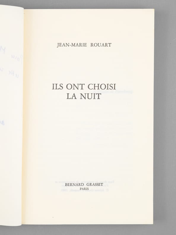 Bel envoi de Jean Marie-Rouart "Pour Maurice, cette volupté de ne pas être [ ... ]. Bon état (couv. lég. frottée) pour cet exemplaire de superbe provenance : de la bibliothèque du grand écrivain Maurice Druon, Secrétaire Perpétuel de l'Académie Française de 1985 à 1999