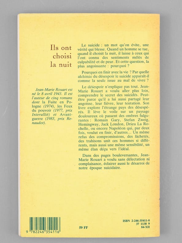 1 vol. in-8 br., Grasset, Paris, 1984, 177 pp.