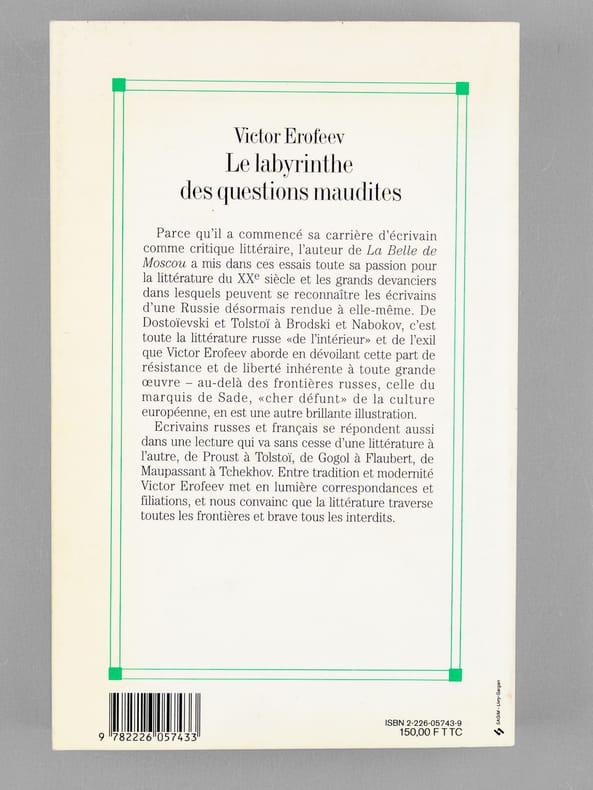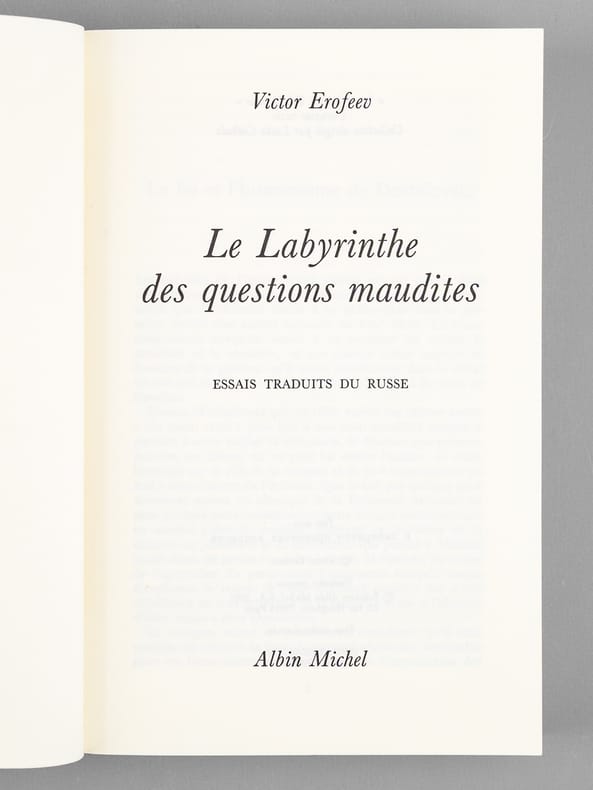 Essais traduits du russe. 1 vol. in-8 br., Albin Michel, Paris, 1992, 311 pp.