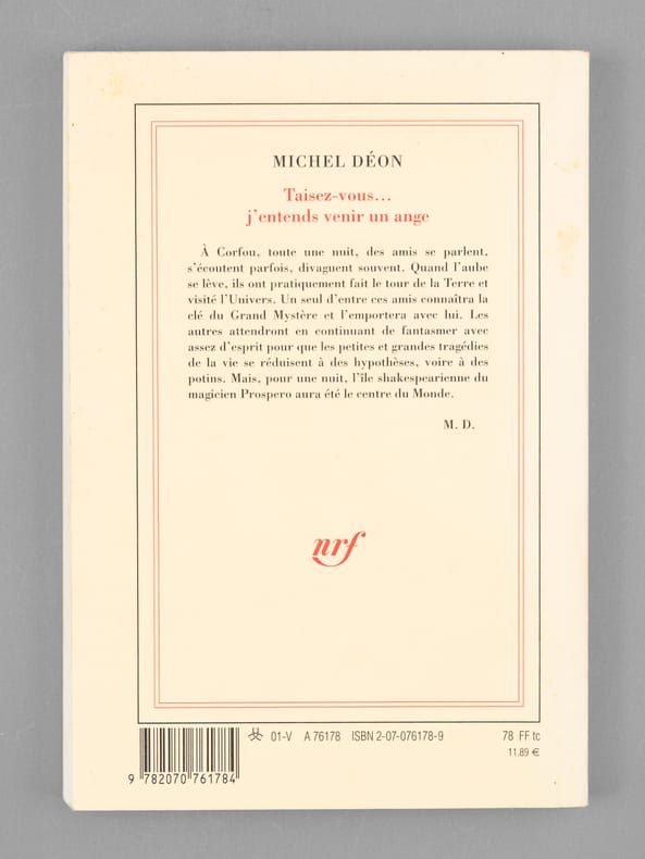 1 vol. in-8 br., NRF, Gallimard, Paris, 2001, 117 pp.