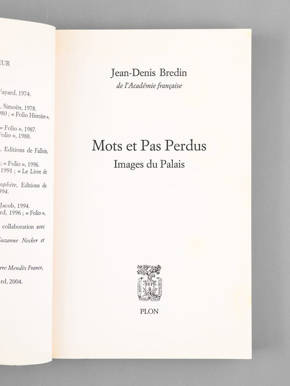 Bel envoi de Jean-Denis Bredin : "Très cher Maurice encore un livre, à ne pas lire ! Sa seule mission est de tenter de le dire,de vous dire à Madeleine et à toi,ma si vive et reconnaissante affection. Un voeux ? Celui de vous revoir souvent. Votre ami qui vous aime. JDB. Je vous prie de vouloir bien agréer, Monsieur le Secrétaire Perpétuel, l'expression de mo infini respect, d'un respect bien respectueux ! Bon état (qq. rouss.) pour cet exemplaire de superbe provenance : de la bibliothèque du grand écrivain Maurice Druon, Secrétaire Perpétuel de l'Académie Française de 1985 à 1999 et immortel auteur avec son oncle Joseph Kessel du texte du "Chant des Partisans"