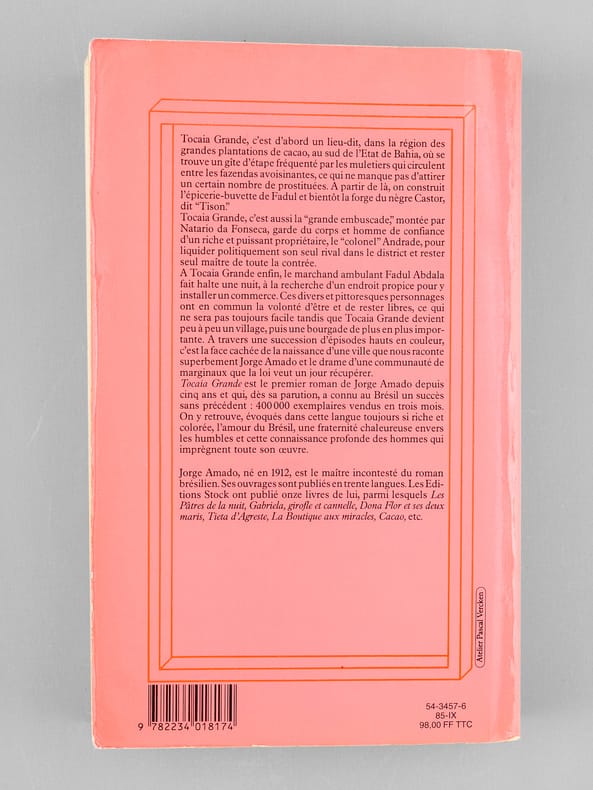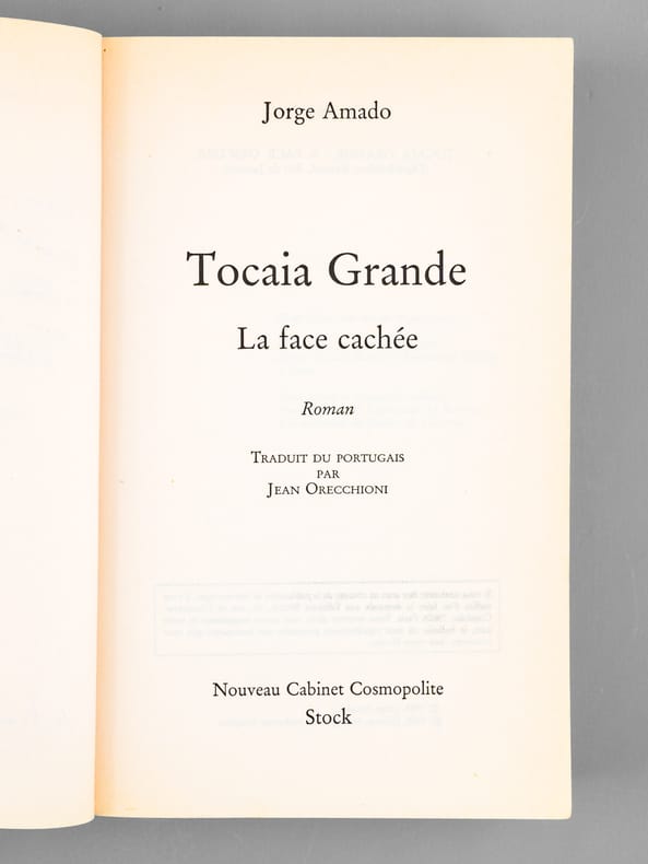Traduction du portugais par Jean Orecchioni, 1 vol. fort in-8 br., Nouveau Cabinet Cosmopolite, Stock, Paris, 1985, 513 pp.