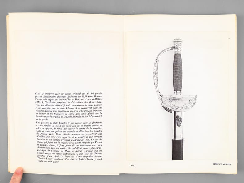 Rare exemplaire numéroté de ce recueil de 20 planches des épées des académiciens de France : François Mauriac, Joseph Kessel, Maurice Genevoix, André Maurois, Maurice Druon, Jules Romains, Vladimir d'Ormesson, etc... Etat satisfaisant (couv. frottée, de nombreux photos décollées de leur support, pliure angulaire sur qq. feuillets) pour cet exemplaire numéroté, de provenance remarquable : de la bibliothèque du grand écrivain et auteur des "Rois Maudits", Maurice Druon, futur Secrétaire Perpétuel de l'Académie Française de 1985 à 1999 et immortel auteur avec son oncle Joseph Kessel du texte du "Chant des Partisans".
