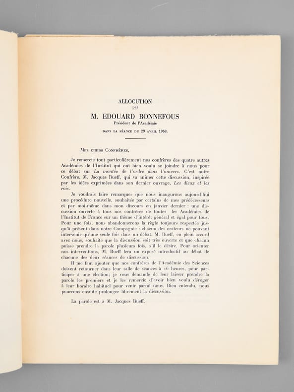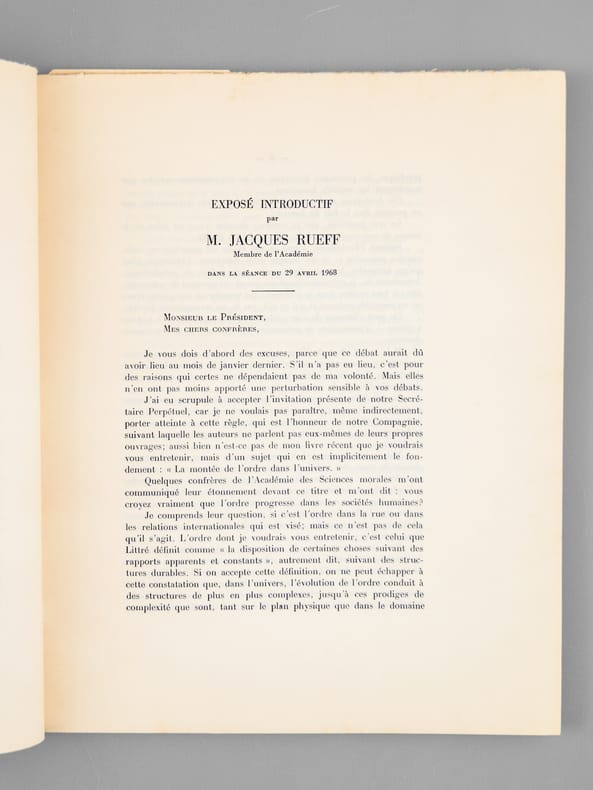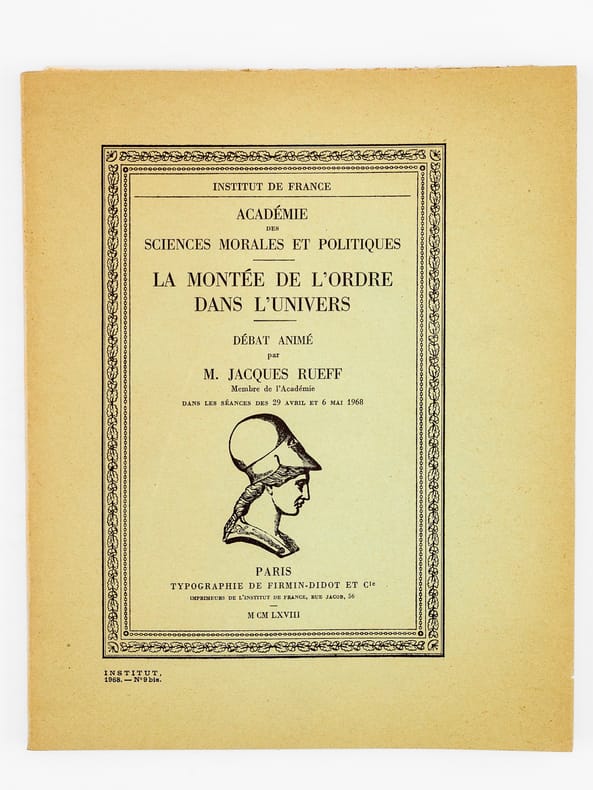 1 vol. in-4 br, Institut de France, Académie des Sciences Morales et Politiques, Typographie de Firmin-Didot et Cie, Paris, 1968, 86 pp.