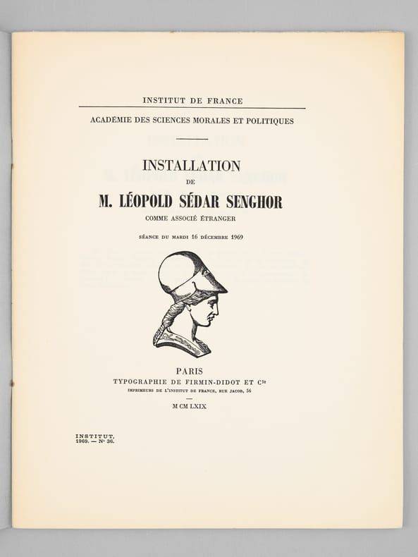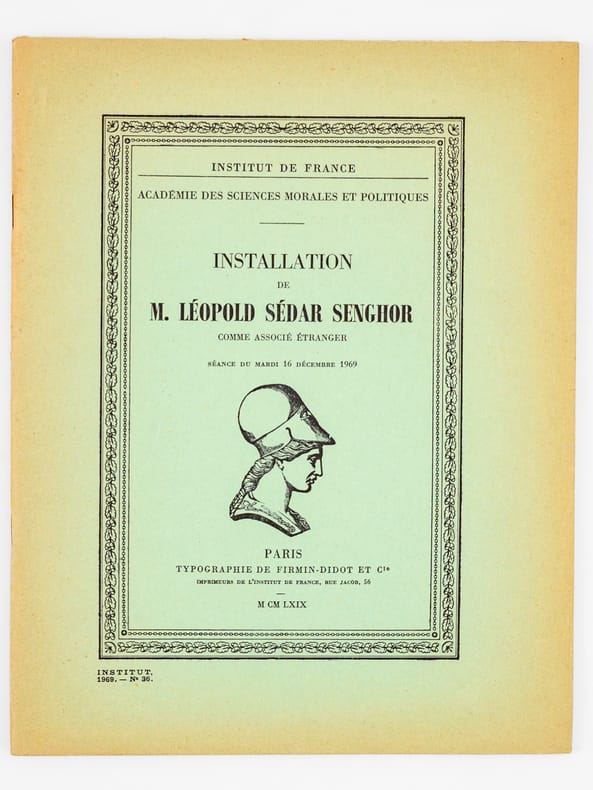 1 vol. in-4 br., Institut de France, Académie des Sciences Morales et Politiques, Typographie de Firmin-Didot et Cie, Paris, 1969, 40 pp.