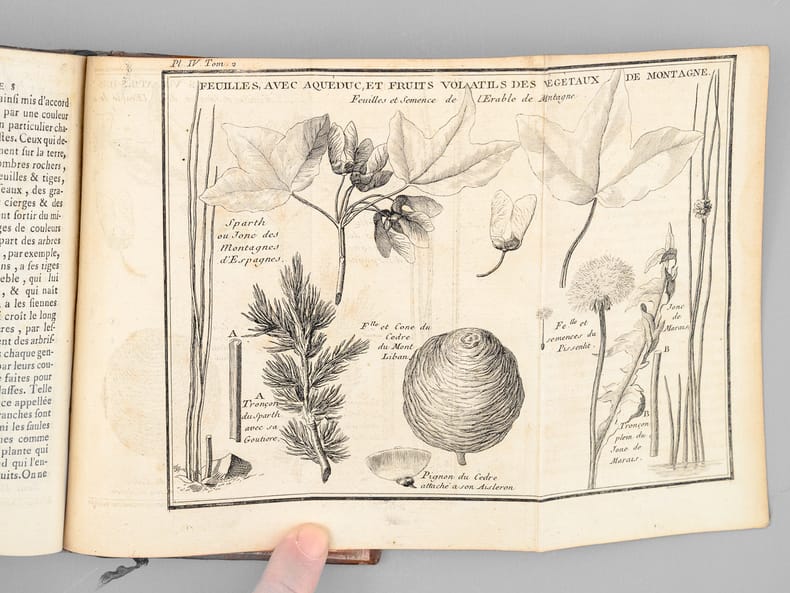 5 vol. in-12 reliure de l'époque plein veau porphyre, dos lisse orné, tranches marbrées, Tomes I, II, III : De l'Imprimerie de Monsieur, Chez Pierre-François Didot le jeune, Paris, 1784, 2 ff., 623 pp. avec frontispice et une planche dépliante ; 2 ff., 631 pp. avec une planche dépliante ; 2 ff., 574 pp. ; Tome IV : Quatrième édition, revue, corrigée et augmentée, Chez P. Fr. Didot le jeune, Paris, 1790, 2 ff., lxxxii-532 pp.et 2 ff. n. ch. ; Tome V : De l'Imprimerie de Monsieur, Chez P. F. Didot le jeune, Méquignon l'Aîné, 1789, 2 ff., xxiv pp., 1 f., 248 pp. ; Tome V Suite : De l'Imprimerie de Didot Jeune, Chez Didot, Né de la Rochelle, De Senne, Paris, 1792, 2 ff., pp. 251-411 ; lvi-72 pp. et 1 f. n. ch., 1 f. blanc