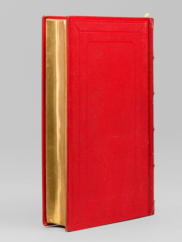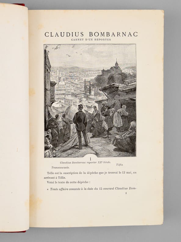Edition ornée de 55 illustrations par L. Benett ainsi que de 6 chromolithographies et de 2 cartes en couleurs. Cartonnage éditeur Hetzel "à l'éventail et à l'éléphant" en pleine percaline rouge, premier plat polychrome signé Engel, dos au phare, deuxième plat de type Engel "i" selon Jauzac, toutes tranches dorées. Catalogue G.K de l'éditeur en fin de volume. Dos légèrement éclaircies et coiffes un peu affaissées, gardes bleues d'origine malginalement éclaircies comme habituellement, coins légèrement émoussés, quelques petites rousseurs affectant principalement le début du volume. Le roman raconte les aventuresrocambolesquesde Claudius Bombarnac,"reporter duXXème siècle", lors de son voyage sur la ligne ferroviairetranscaspienneentre le port d'Ouzoun-AdaetPékin. Le Château des Carpathesest unroman gothique se déroulant en Transylvanie. - Photographies et détails sur www.Edition-Originale.com -