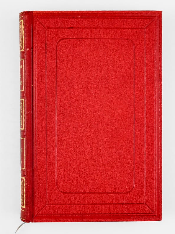 Dessins par Benett, 1 vol. in-8 reliure de l'époque demi-chagrin rouge dite « aux fers de lance » (ou « harpons » ou "reliure à la lancette"), dos à 4 nerfs orné, toutes tranches dorées, reliure signée de A. Lenègre, Collection Hetzel, Coll. Les Voyages Extraordinaires, Bibliothèque d'Education et de Récréation, J. Hetzel et Cie, Paris, s.d. [ 1893 ], 398 pp. et 1 f., et 4 ff. (Catalogue GU)