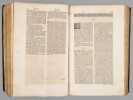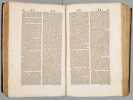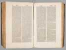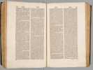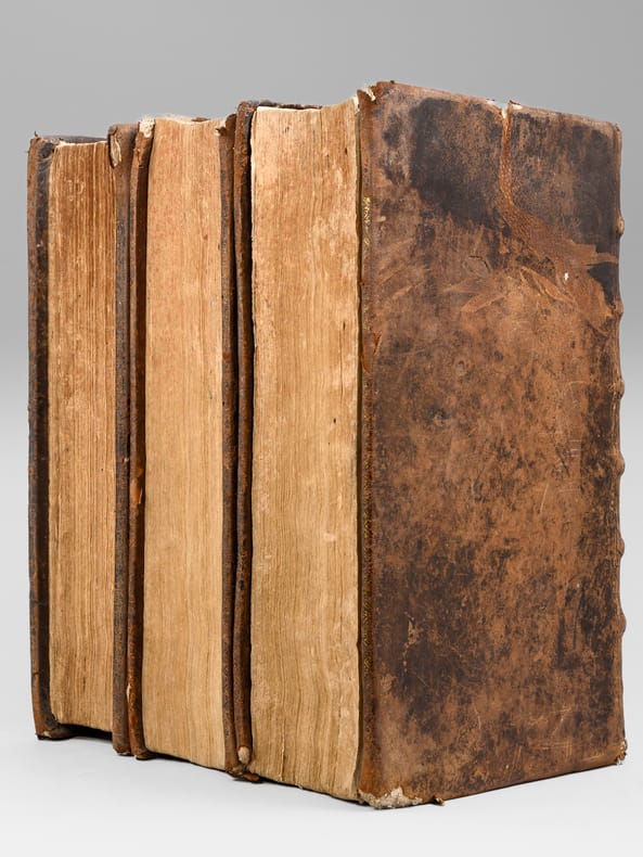 Le troisième tome est le "Supplément ou Troisième Volume du Grand Dictionnaire Historique" qui contient "Des Matières de même Nature que celles des deux premiers Tomes". Paru en 1689, ce supplément complétait la quatrième édition du Dictionnaire de Moreri, paru en 1687, mais également cette troisième édition de 1683. Etat satisfaisant (reliures fort. frottées mais bien solides, avec manques en coins, coupes et coiffes, restaurations au verso des 2 premiers feuillets du tome I et du second feuillet et du dernier feuillet du tome II avec qq. pertes de texte pour ces deux feuillets, 2 ff. remontés et contrecollés en marge intérieure en préface du tome premier, gardes volantes remplacées, bon état par ailleurs). Prix en l'état pour cet ensemble monumental.