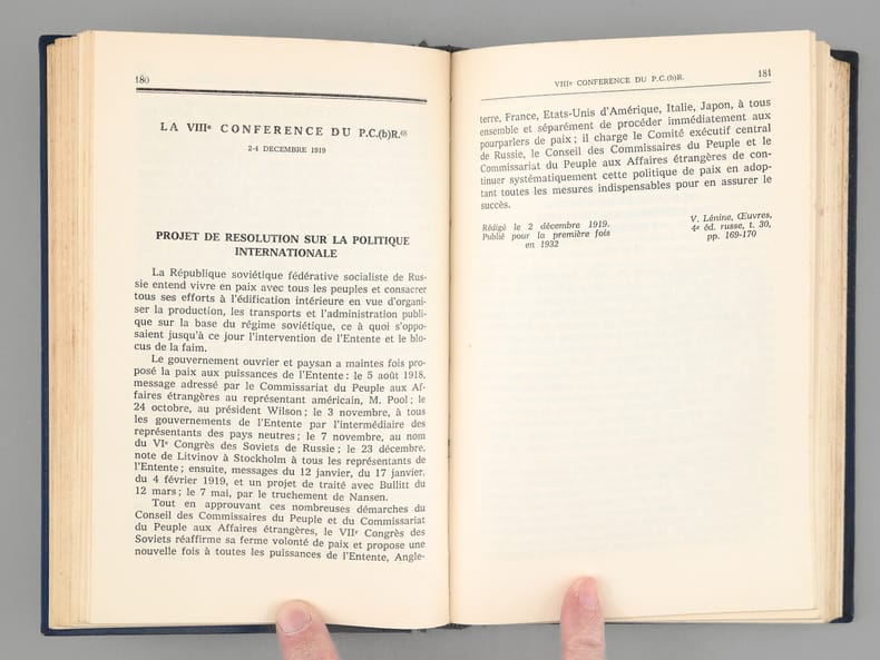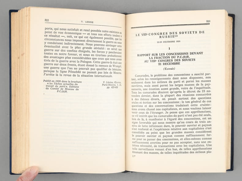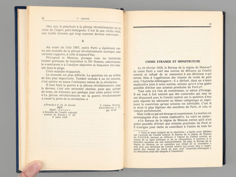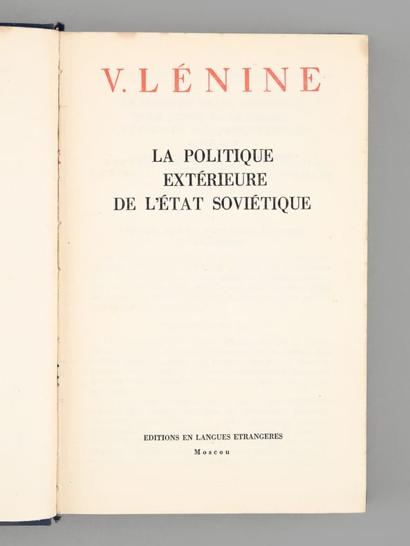 1ere édition, 1969 Contents, Chapitres : 1. Le Léninisme et l'unité du mouvement communiste international (101 pages) - 2. La théorie léniniste du parti dans le monde moderne (56 pages) - 3. Le Léninisme, arme puissante dans la lutte idéologique d'aujourd'hui (80 pages) - 4. Le Léninisme et la communauté des pays socialistes (95 pages) - 5. La théorie léniniste de l'impérialisme dans le monde moderne (157 pages) - 6. Les principes léninistes de la politique extérieure soviétique (102 pages) - 7. Lénine sur l'Etat socialiste (70 pages) - 8. Stratégie et tactique du Léninisme (85 pages) bel exemplaire, l'étui est un peu jauni, avec une legere déchiure sur le haut du rabat, sans gravité, les 8 fascicules à l'intérieur sont complets et en très bon état.
