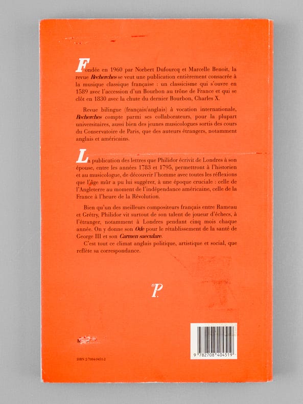 1 vol. in-8 br., coll. Recherches sur la musique française classique, Picard, 1995, 262 pp.