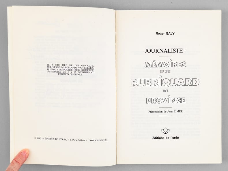 Envoi ms. de l'auteur, 1 vol. in-8 br., éditions de l'orée, Bordeaux, 1982, 180 pp.