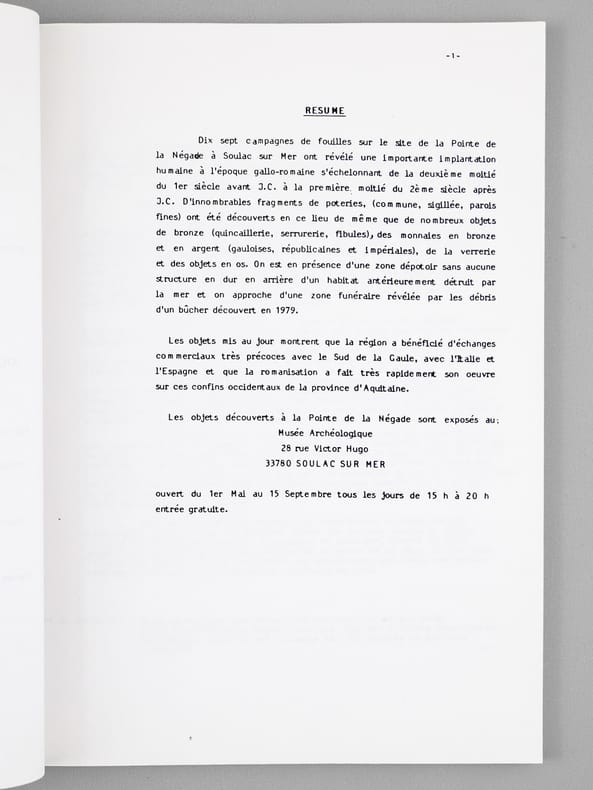 Bon état. Peu courant. La pointe de la Négade est une petite avancée de terre, au sud de Soulac-sur-Mer (Gironde). Les vestiges archéologiques qui y ont été trouvés ont une origine s'étalant de l'âge du bronze à l'époque gallo-romaine.