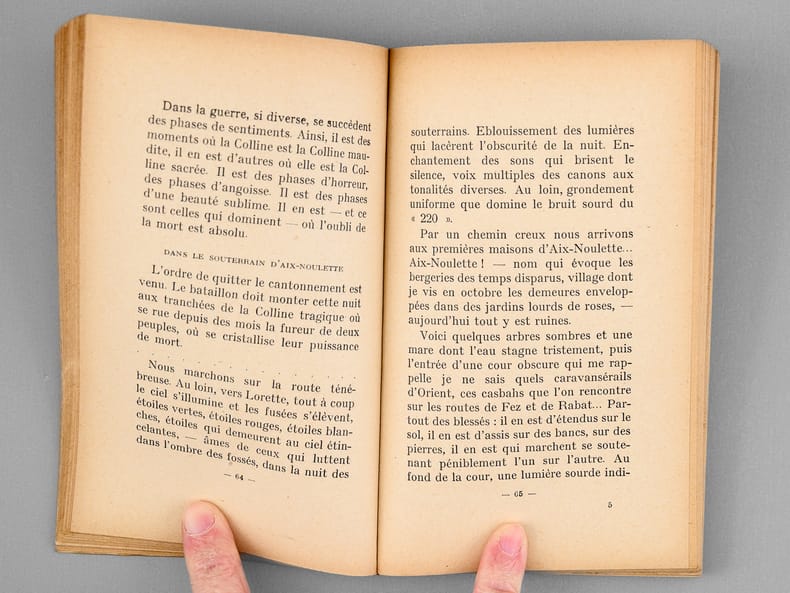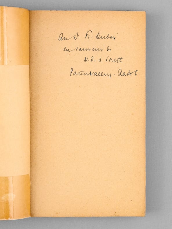 Etat très satisfaisant (dos renforcé à la toile, couv. plastifée, bon état par ailleurs), pour cet exemplaire avec un envoi de l'auteur : "Au v. Fr. Dubois, en souvenir de N.D. de Lorette." Lors de la seconde bataille d'Artois, en mai-juin 1915, la colline de N.D. de Lorette vit la mort sur le champ de bataille de 40 000 soldats français (et 64000 blessés).