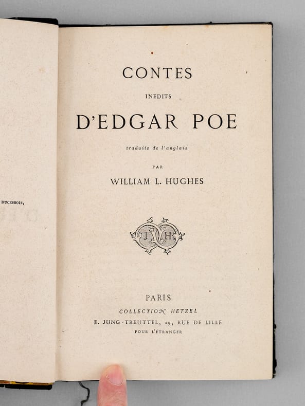 Traduit de l'anglais par William L. Hughes, 1 vol. in-12 reliure demi-chagrin vert bronze, dos à 4 nerfs orné, Collection Hetzel, E. Jung-Treuttel, Paris, s.d. [ 1862 ], 2 ff., III-314 pp. et 1 f. n. ch.