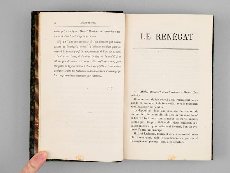 Bon état (qq. rouss.) pour l'édition originale de cette étude de moeurs politiques, décrivant l’ascension fulgurante et la chute morale de Michel Berthier, jeune avocat ambitieux élu député de Paris sous le Second Empire. Porté au pouvoir par le parti libéral et les classes populaires, il incarne l'espoir d'une opposition ferme face au régime impérial, mais trahit ses électeurs comme ses amours...