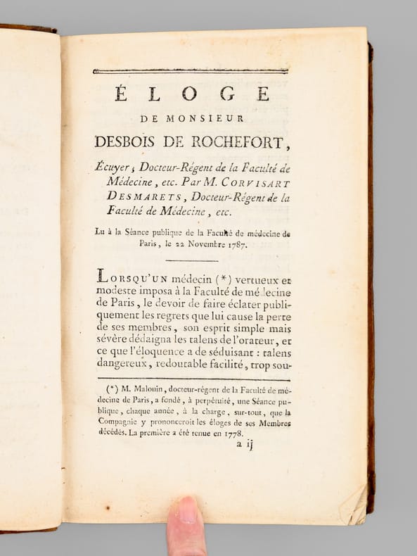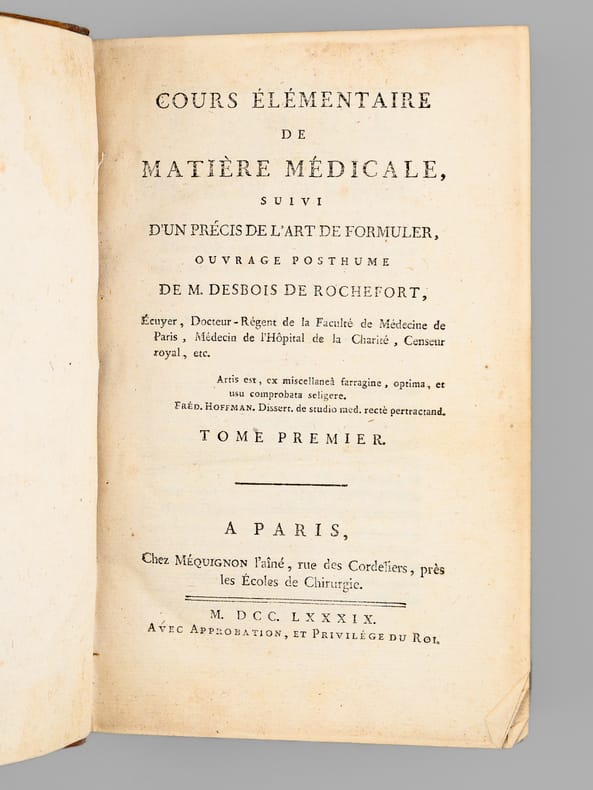 Cet ouvrage posthume de Louis Desbois de Rochefort (1750-1786) fut publié par son célèbre élève à la destinée glorieuse, Jean-Nicolas Corvisart, médecin personnel de Napoléon Ier.. Etat satisfaisant (accrocs et petites restaurations en coupes)
