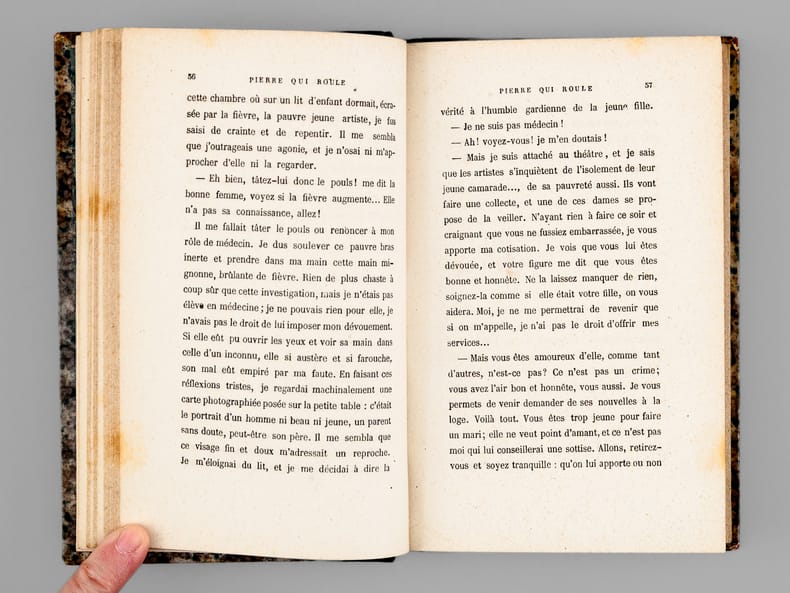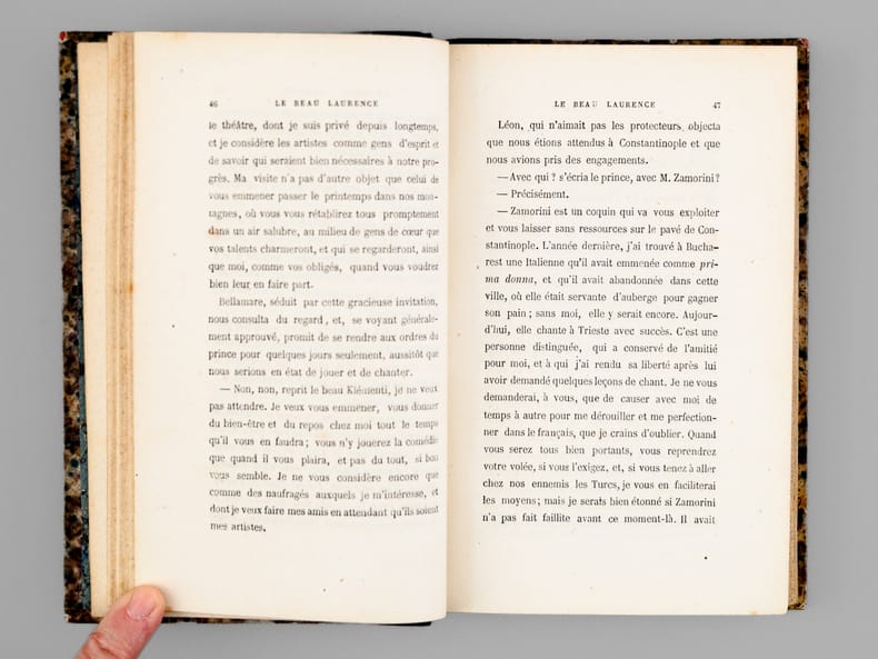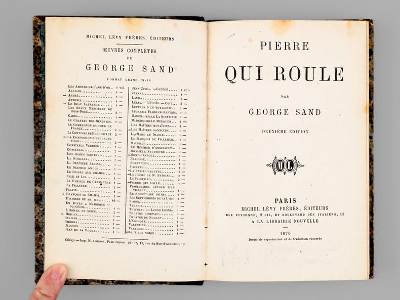 Bon état pour cet ensemble bien complet, "Le Beau Laurence" constituant la suite de "Pierre qui roule". Ce roman nous plonge dans une troupe de théâtre qui travers la France et l'Italie jusqu'à la Dalmatie. Bon état (coupes lég. frottées, bon exemplaire par ailleurs, discret cachet à froid de compagnie des chemins de fer sur une page de titre).